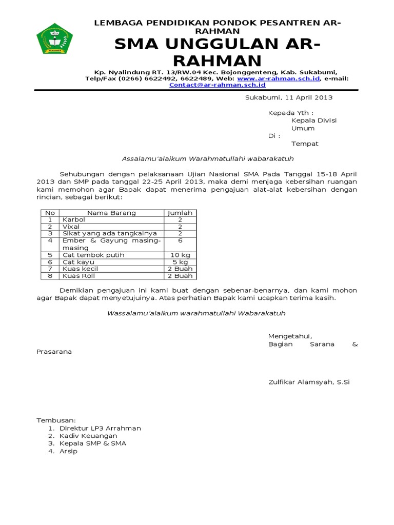 Surat Pengajuan Alat Alat Kebersihan Pdf